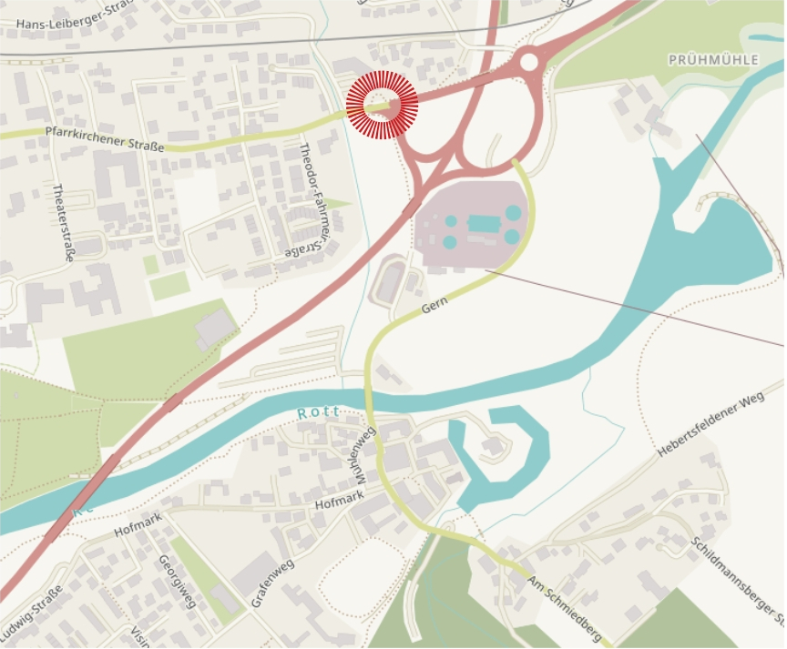 Ungefähre Lage der einstigen Antwortstelle bei der Hofmark Gern (Eggenfelden).