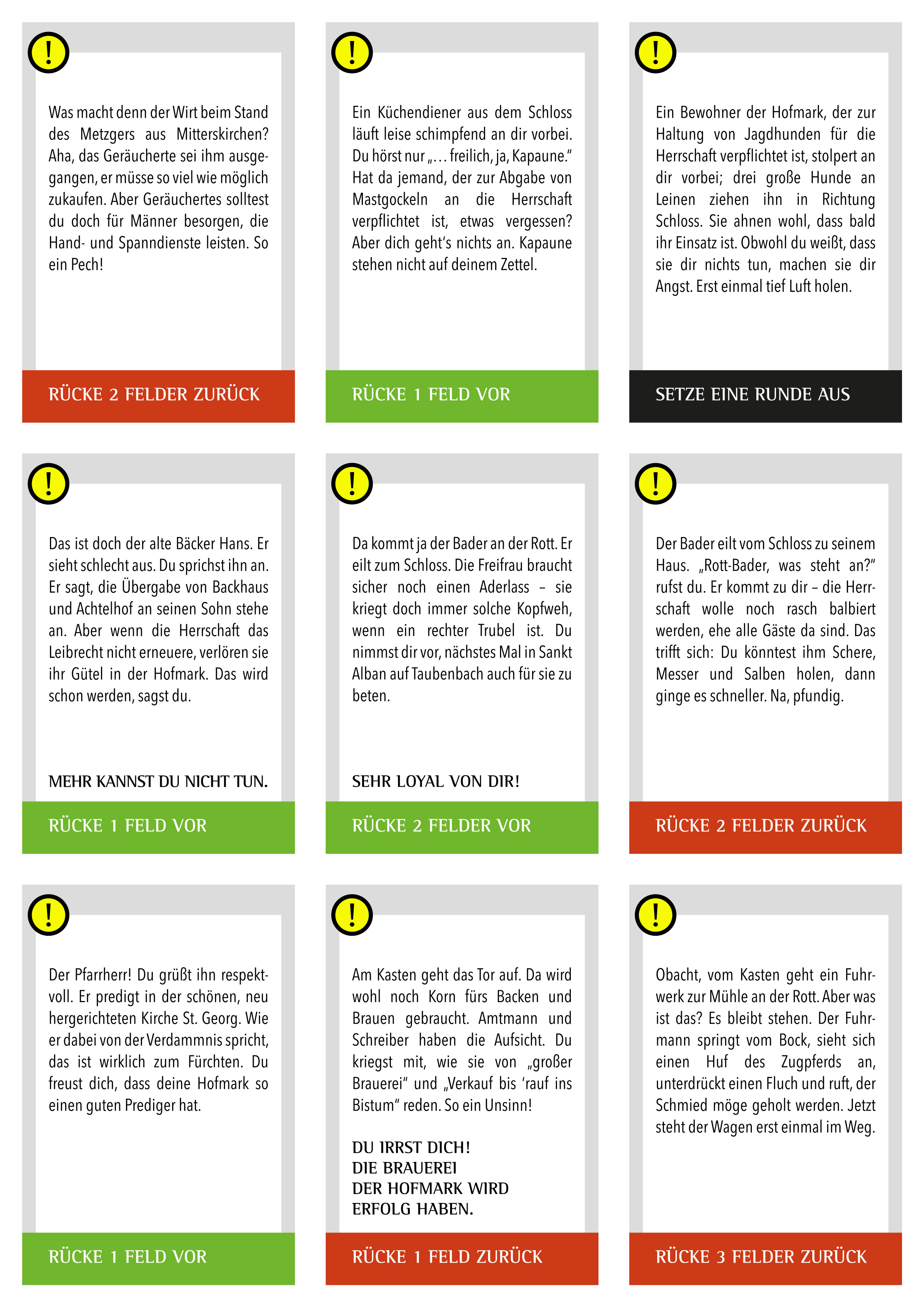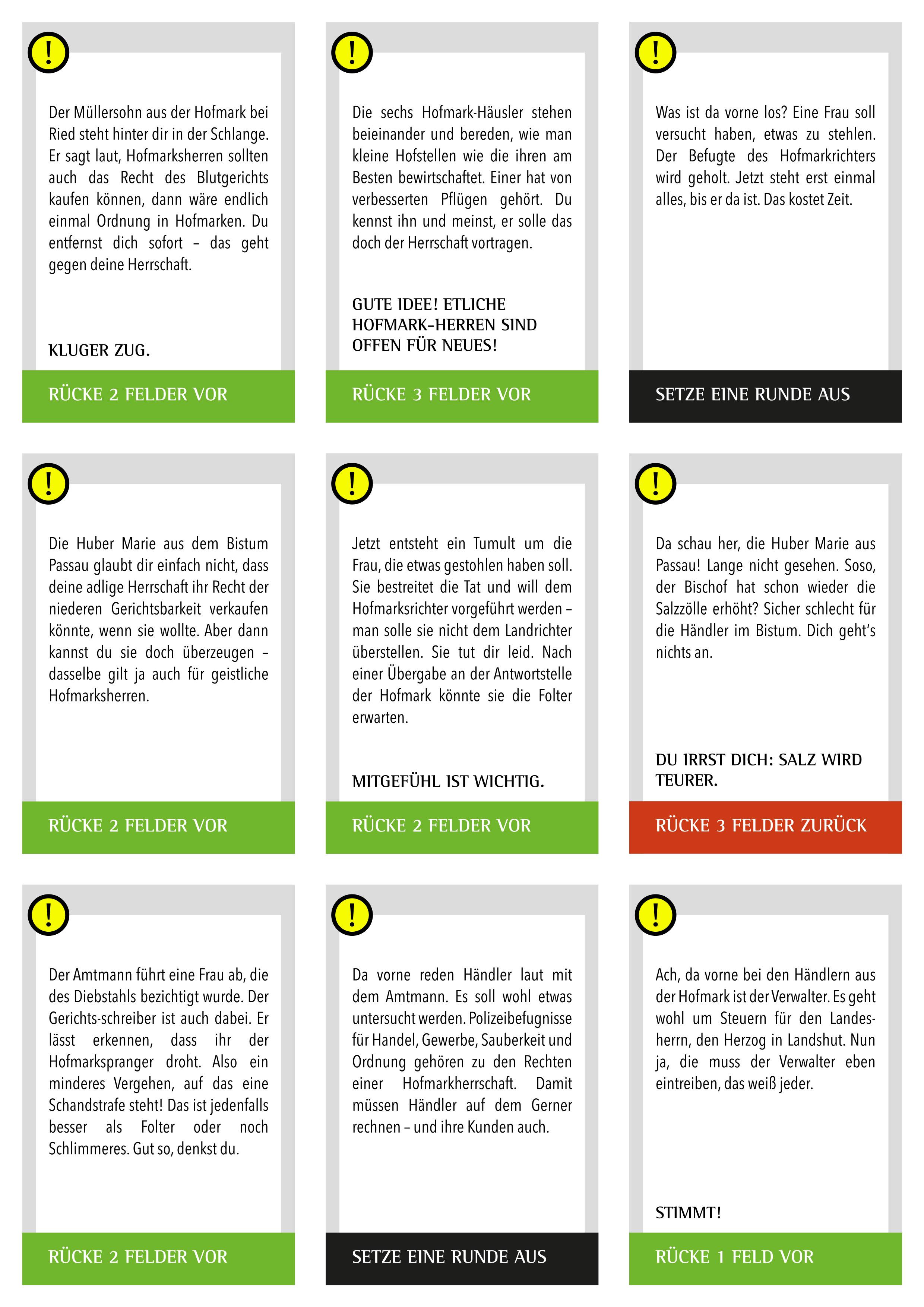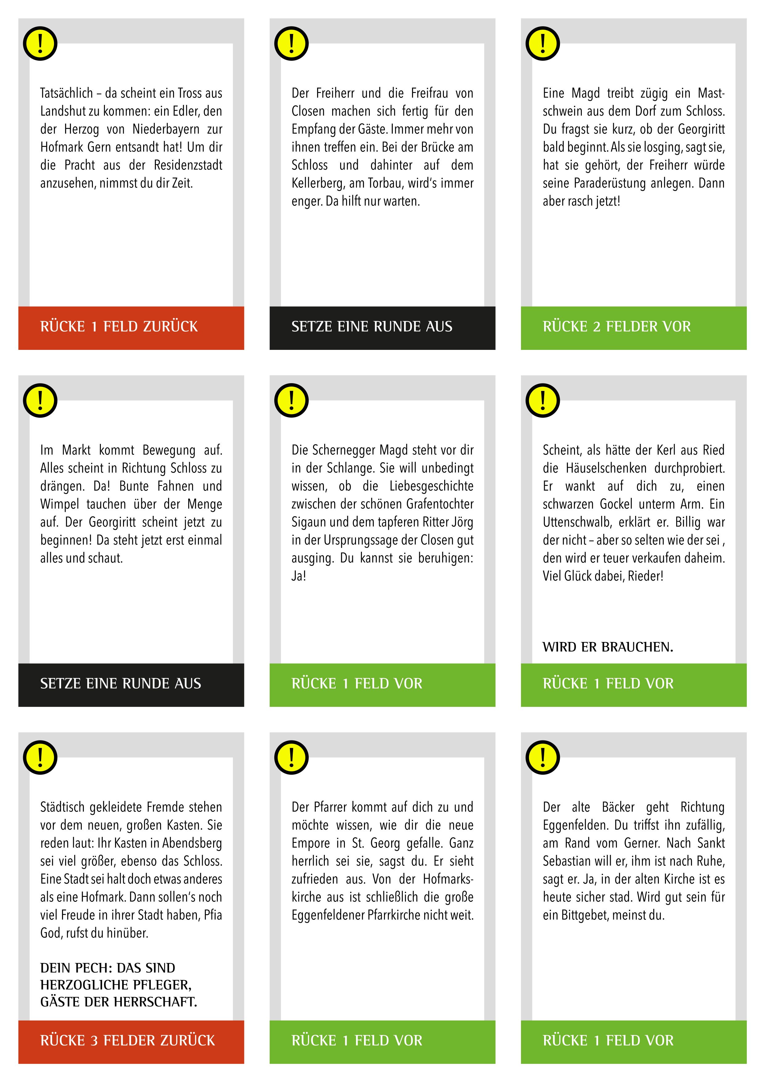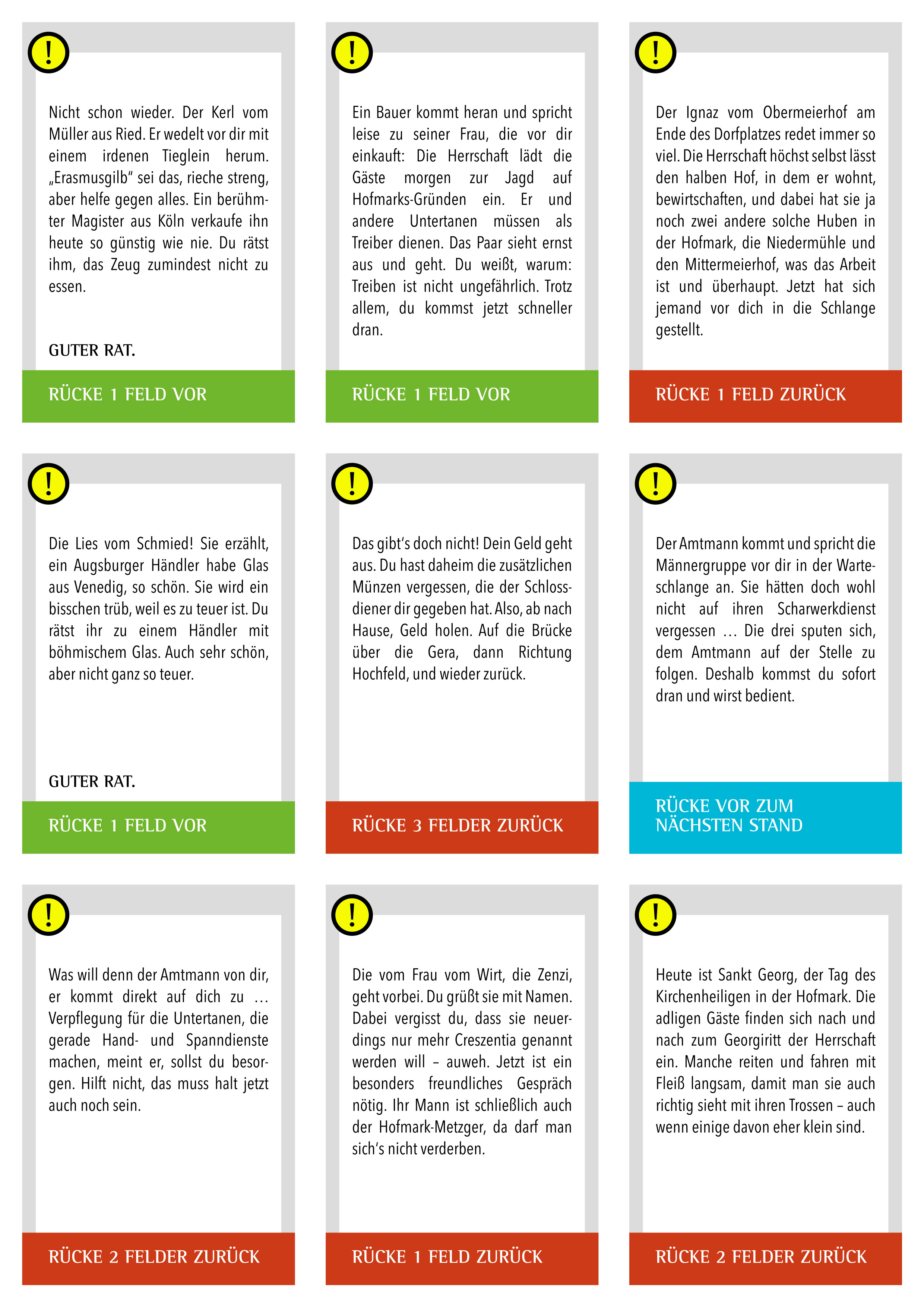 • Die Ereigniskarten lenken den Verlauf für die Spielteams und haben farbliche Bedeutungen: