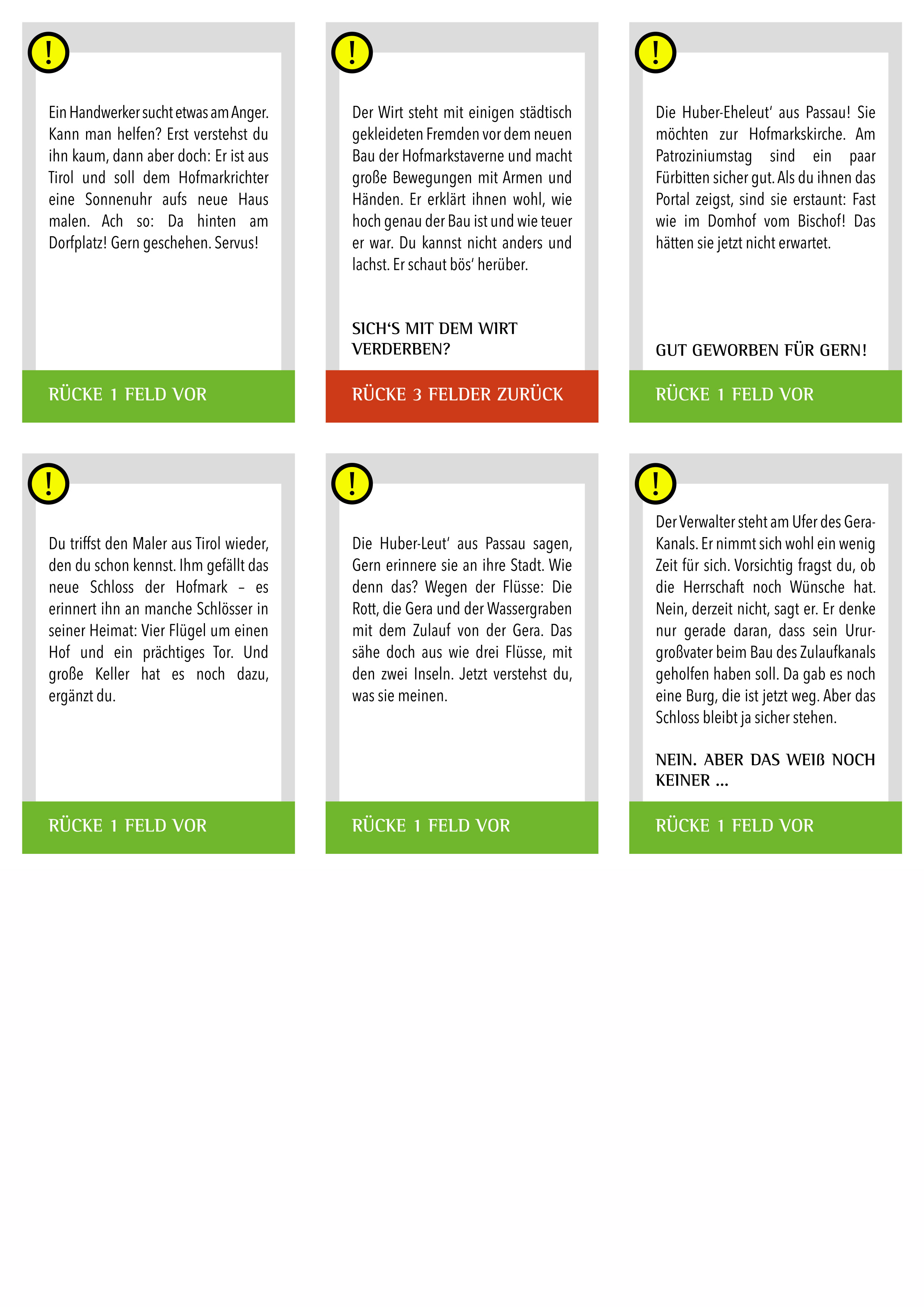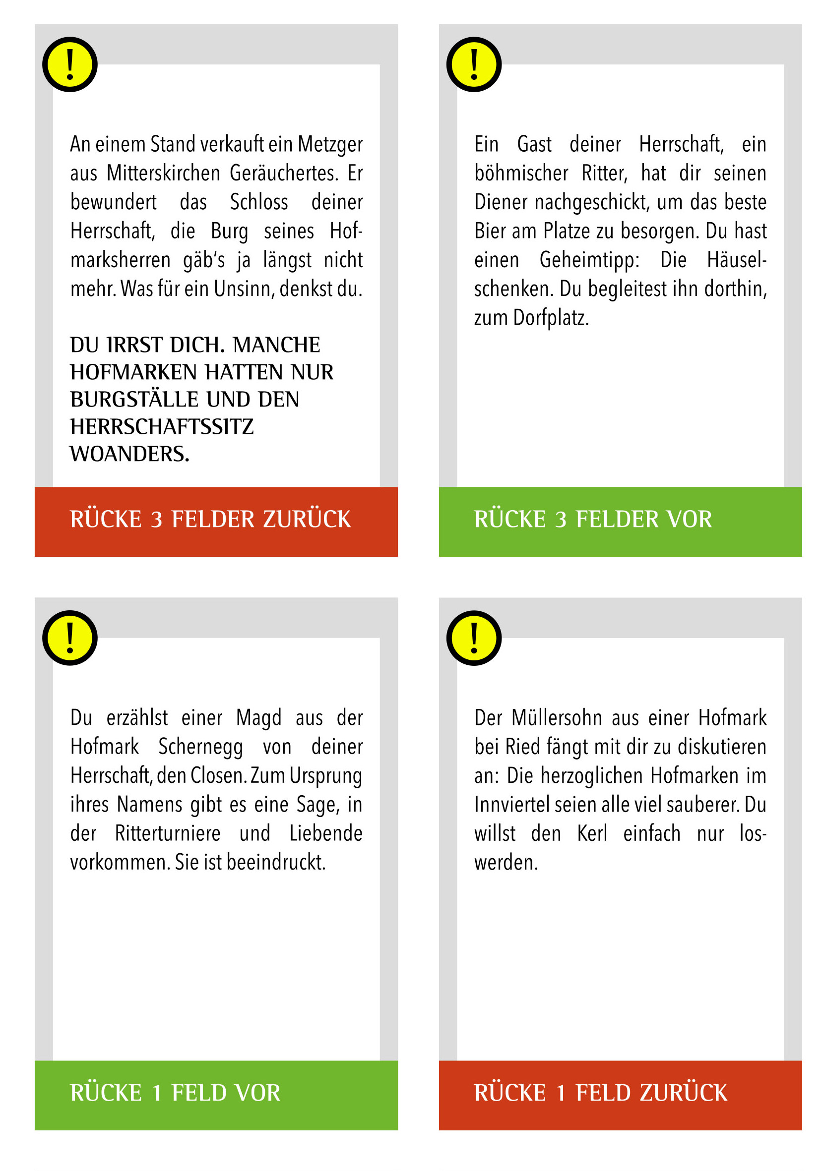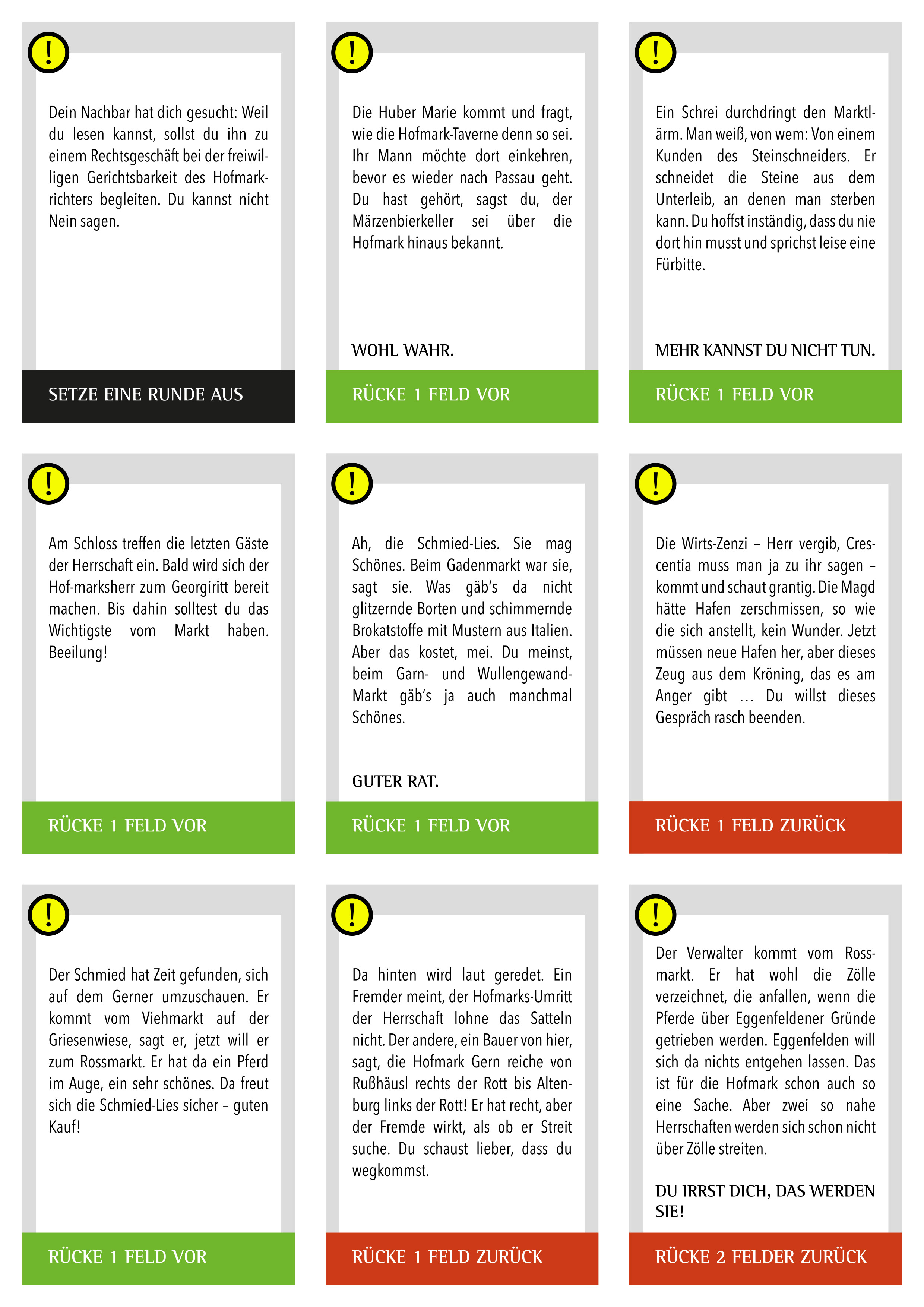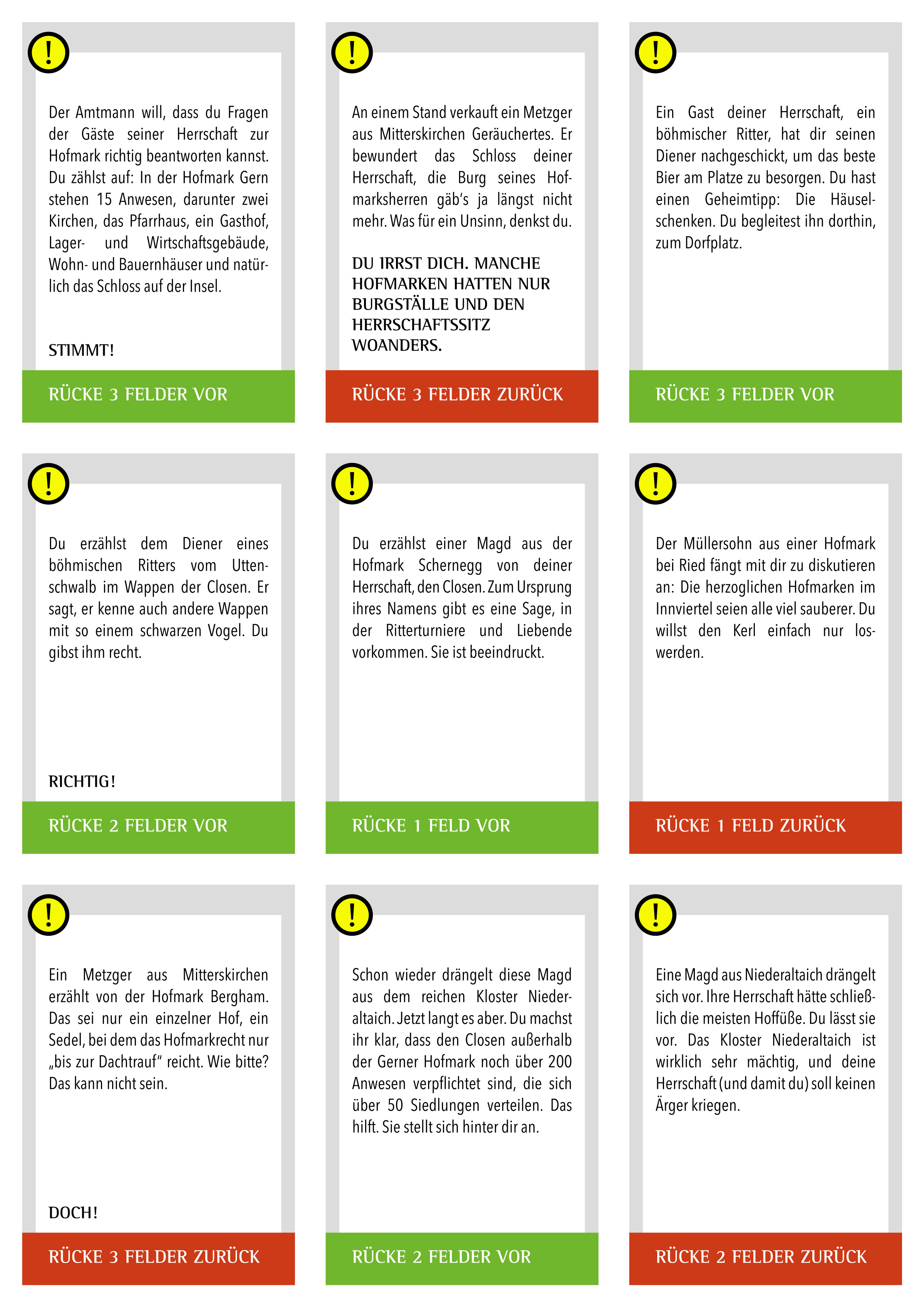 • Die Ereigniskarten lenken den Verlauf für die Spielteams und haben farbliche Bedeutungen: