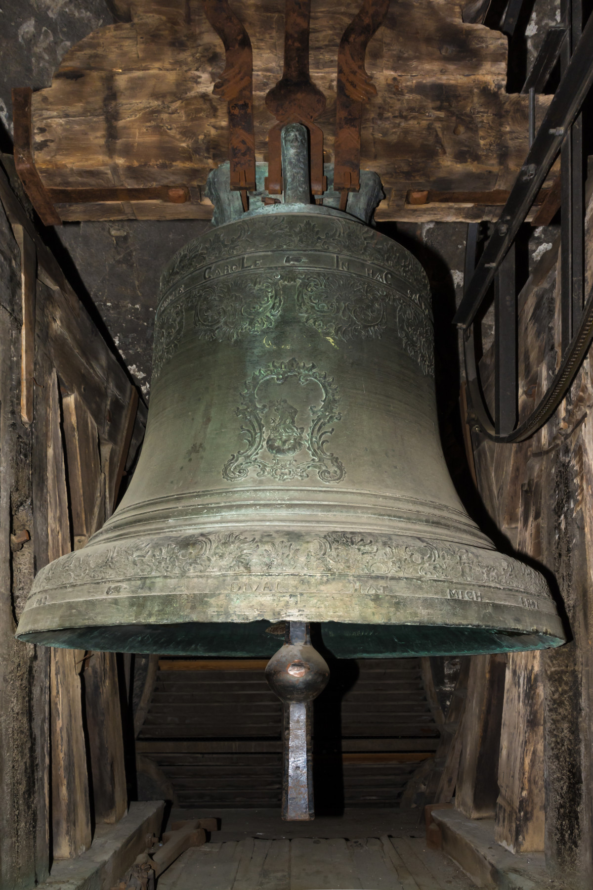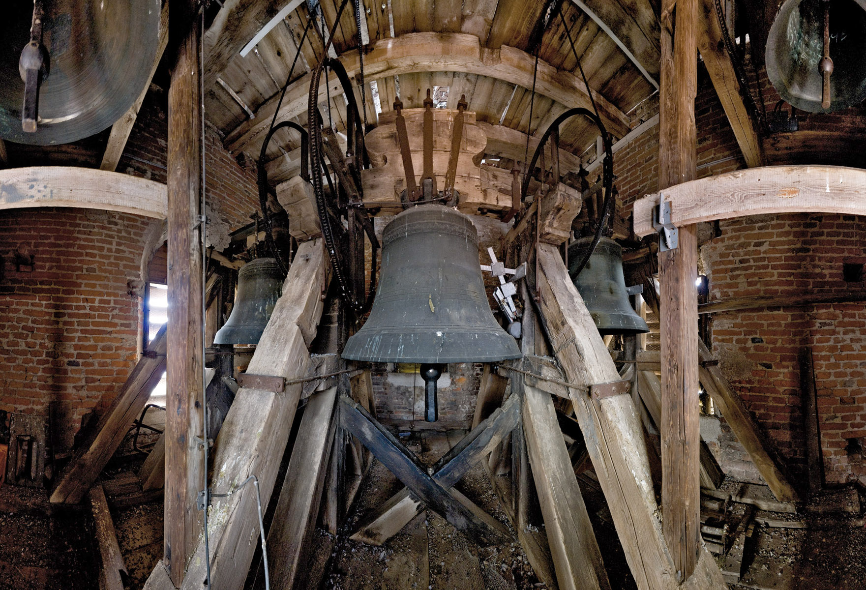 Im Glockenstuhl eines Kirchturms