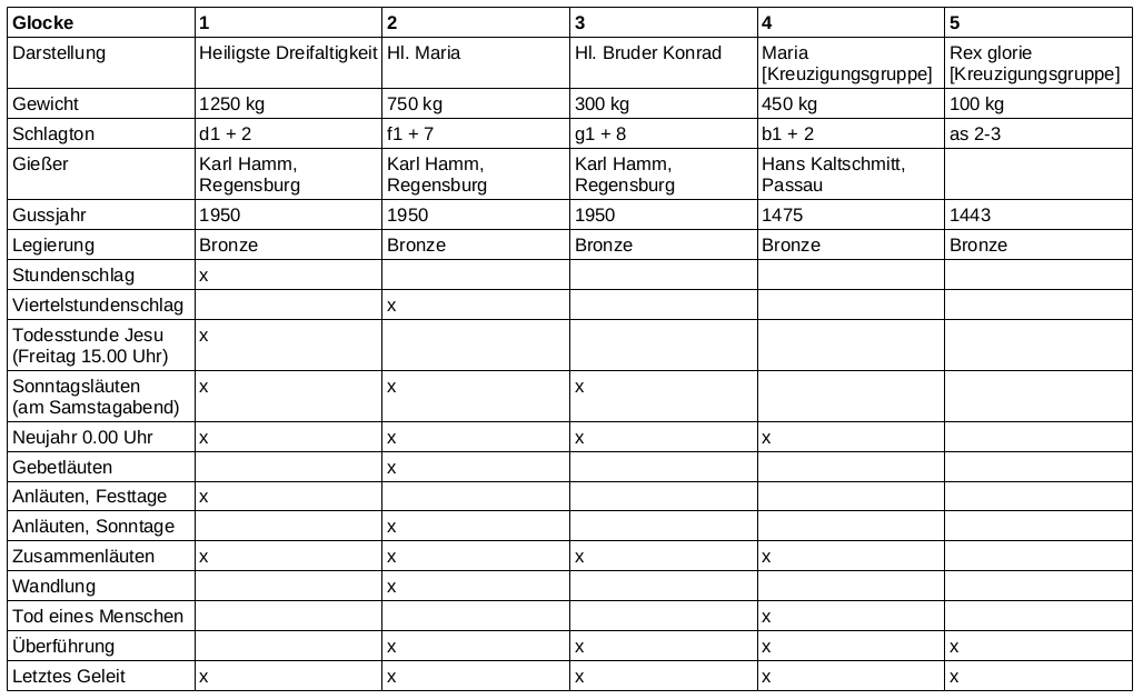 Die vom 15. bis ins 16. Jahrhundert erbaute katholische Wallfahrtskirche Hl. Dreifaltigkeit in Kößlarn (Landkreis Passau) hat ein Geläut aus fünf Glocken, zwei davon gotisch. Läutplan und Geläut aus Kößlarn machen hörbar, wie mit Glockenklängen auch heute noch Zeit eingeteilt wird.