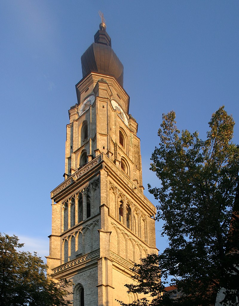 In mehr oder weniger reicher Ausformung findet man dieses Schema - quadratischer Unterbau, Achteckaufsatz und Spitzhelm - ebenso an mehreren Türmen der herzoglichen Residenzstadt Landshut: Bei St. Martin (1441 ‒ nach 1500), Heilig-Geist (1407 ‒ um1467) und St. Jodok (1438 ‒ ca. 1480 fertiggestellt).